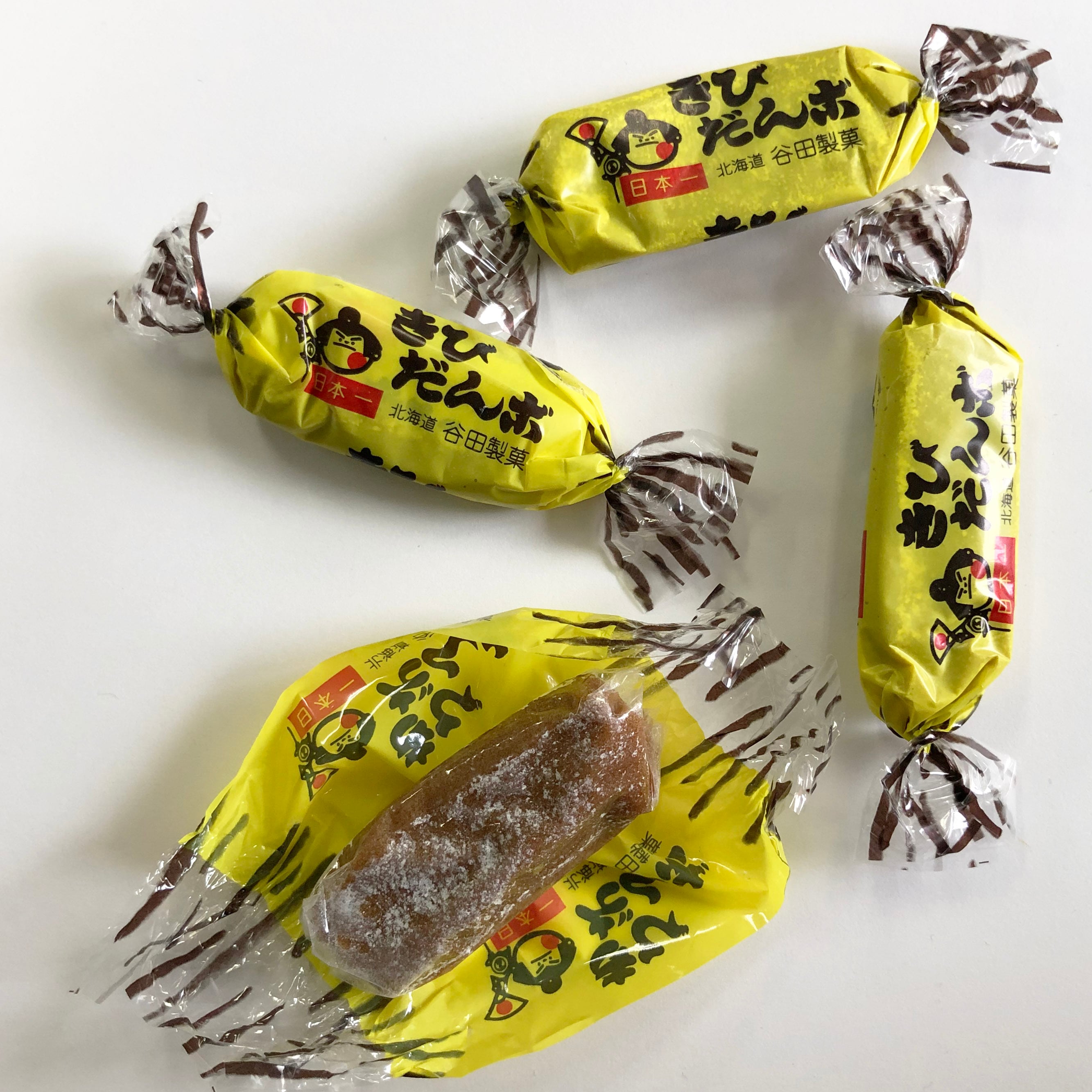 谷田の日本一きびだんご。 北海道のきびだんごは丸くありません。